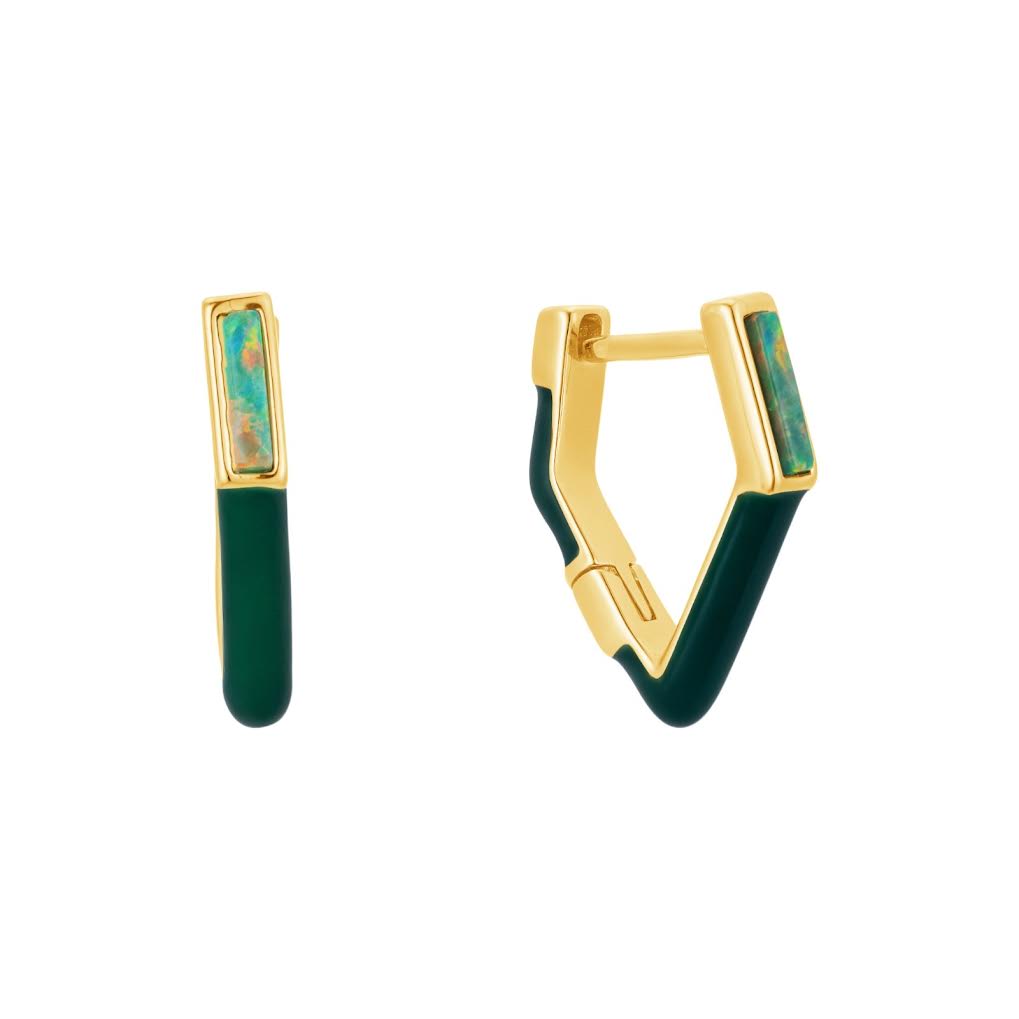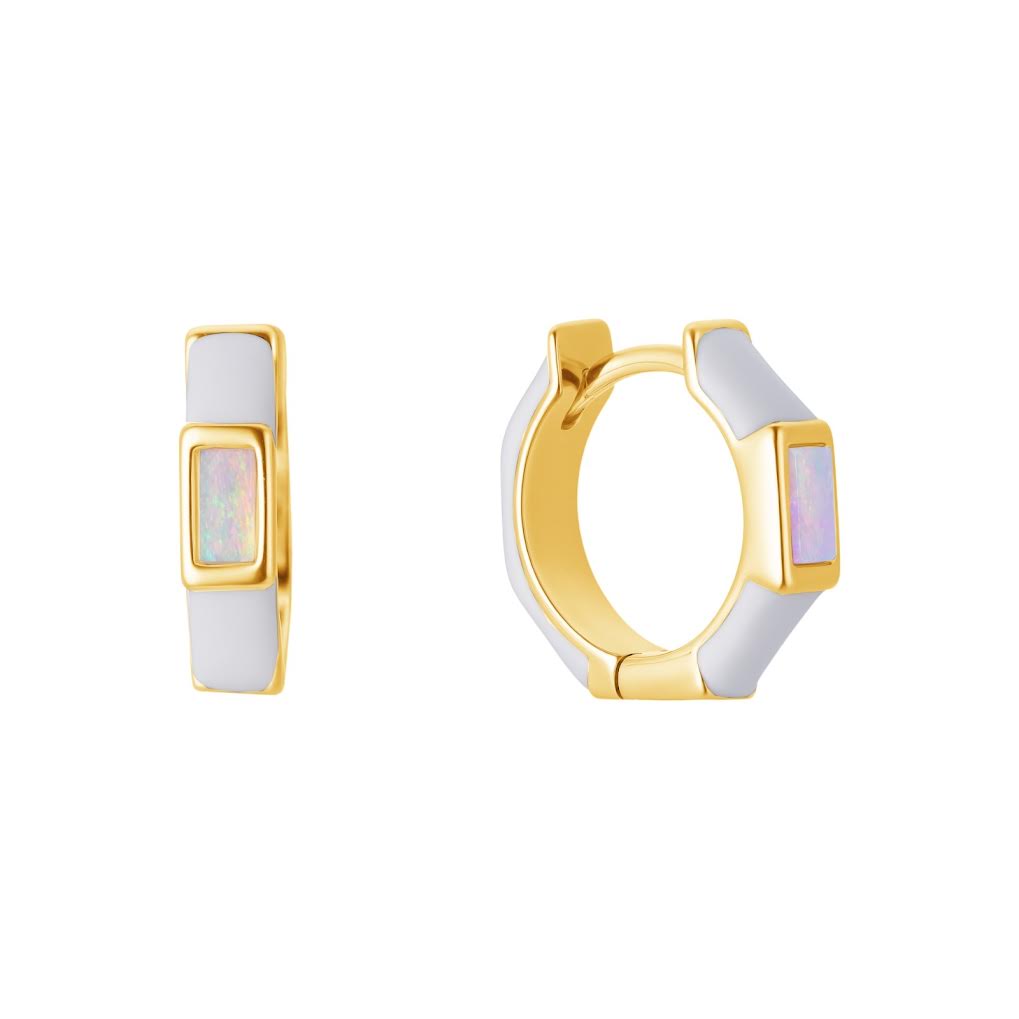 Enamel huggie hoops with opals